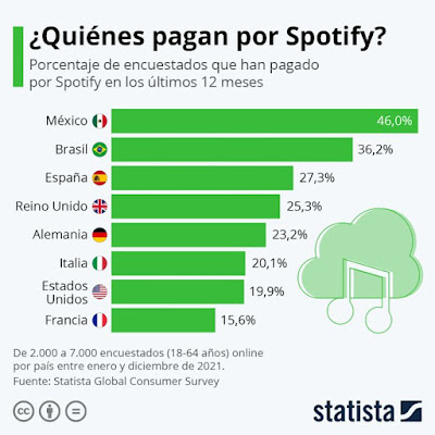 el consumo de podcasts varía bastante de un país a otro, atendiendo a los últimos datos de la macroencuesta Statista Global Consumer Survey,